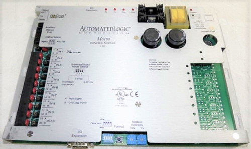 . . . . . M line (multi-equipment application) controllers are part of the Automated Logic Corporation native BACnet system, which also includes S line (single-equipment application) and U line (unitary-equipment application) control modules. M line controllers are ideal for multi-equipment applications in commercial environments. These robust standalone controllers utilize native BACnet communications over a high-speed ARCNET 156 Kbps network to ensure superior performance. Multi-equipment capabilities support general HVAC applications including complex central plants. Native BACnet communication over a high speed ARCNET 156 Kbps network. Graphical programming for universally understood and self documenting control sequences. Tough construction delivers superior performance and reliability in the field. Removable screw terminal strips simplify maintenance. Modular expandable design, configurable up to 192 points for scalable control solutions. Integral support for the BACview interface display unit - enhances local. 32-bit microprocessor and ARCNET communications co-processor. The M line series of expandable and non-expandable controllers are ideal for all types of facilities management applications. The expandable controllers are offered in I/O configurations that easily scale up to 192 points. This flexible design lets you add point types incrementally and size control panels to match system requirements. Intelligent features include on-board expansion connectors for additional I/O capacity and removable screw terminal strips to simplify installation and maintenance. With powerful 32-bit microprocessor technology, high-resolution inputs and outputs, and pneumatic outputs, M line control modules are a perfect match for the most complex control environments. Support for EIKON graphical programming also provides an unmatched capability to engineer complex control sequences, verify performance, and generate instant documentation all without special programming expertise. Add in the advantage of the BACview local operator interface and you see why M line control modules provide an industry-leading combination of capability, performance, and value. With flexible I/O point configurations, M line is designed to cost effectively fit a variety of commercial control applications. Module circuit boards are protected by a rugged aluminum cover, which serves as a ground plane and provides optimum electrical protection and noise immunity.. Automated Logic. Automated Logic Corporation. M0100.