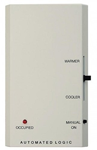 RSPL Room Sensor. Without LCD Display. Slide-Pot Set Point Adjustment. Local Override. . Key Features and Benefits All Room Sensors: Attractive, low profile enclosure in a neutral color complements any room. Precise 10K ohm thermistor with + 0.36F (0.2 C) standard accuracy and less than 0.18 F (0.01 C) drift over a ten year span - requires no maintenance or re-calibration. A hidden communication port allows a laptop computer to be connected to the HVAC Control System. Multiple RS room sensors can be daisy-chained to one controller for temperature averaging or high/low select control. (One RS Plus, RS Pro or RS Pro F with up to four RS Standards.) Mounts on a standard 2" by 4" electrical box for easy installation. RS Plus: Features a convenient local setpoint adjustment through an easy to use slide potentiometer. Occupancy override is simple using the momentary push button on the RS Plus with a bright LED for immediate indication of status. When the override button is pressed during an unoccupied mode, the zone reverts to an occupied setpoint for a predetermined period of time. RS Pro/RS Pro F: Large, easy-to-read LCD on the RS Pro displays zone temperature, outside air temperature, heating setpoint, cooling setpoint, and local override (after-hours occupancy) time. Occupancy override is easy using the "Manual On" momentary pushbutton on the RS Pro. A single push switches the zone to an Occupied mode for a preset period of time. Multiple pushes increases the override time, and the LCD displays precisely how long the zone will stay occupied. The occupied time per push and maximum override time are fully programmable in EIKON Zone setpoints can be easily changed on the RS Pro by pressing the "Warmer" or "Cooler" button. How much each push affects the setpoint and the maximum total adjustments are fully programmable in EIKON. Pressing the "Fan Speed" button on the RS Pro F incrementally adjusts the fan speed of the fan coil unit. The "Mode" button can be used to select among several zone operation modes as programmed in EIKON.. Automated Logic. Automated Logic Corporation. RSPL.
