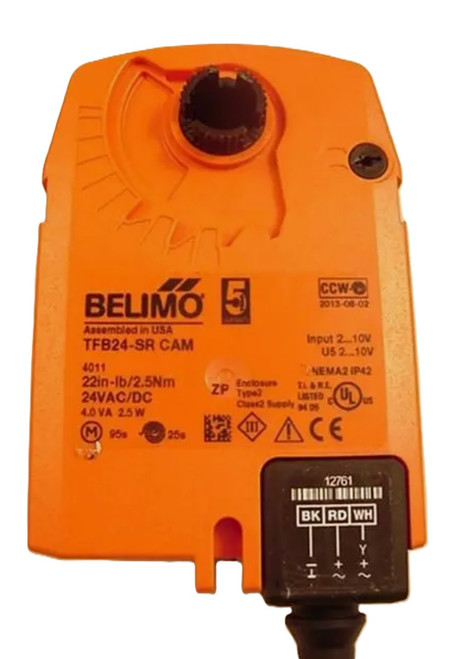 Belimo TFB24-SR CAM Spring Return Damper Actuator, 24VAC/DC, 22 in-lb Torque, 2-10VDC (4-20mA) Proportional Control Input, 95 Second Run Time, 25 Second Spring Return, Damper Area up to 5.5 Sq.Ft. Belimo. Belimo. TFB24-SR CAM.