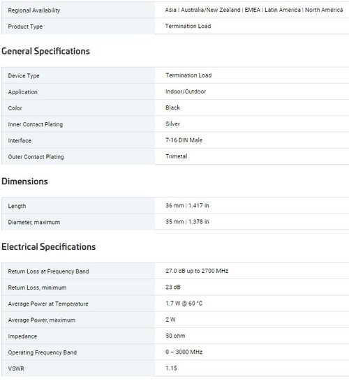 . . . . . dc-3.0 GHz 2 Watt DIN Male Termination Load, 50 Ohm. CommScope. Andrew Solutions. T-2-DM.