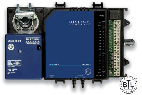 . . . . . B-ASC single-duct VAV controller for cooling only and cooling with reheat VAV box with 2 DO (Triac), 1 UO. Built-in differential pressure transducer (0- 500Pa, 0-2.0" w.c.) and actuator (4Nm, 35in-pd).. Distech. Distech Controls. CDIB-VASO-01.