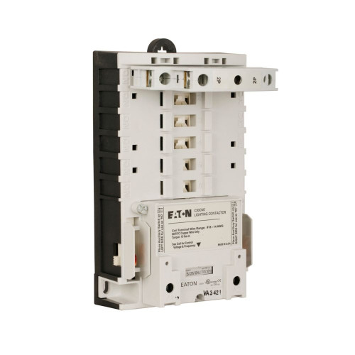Eaton C30CN mechanically held lighting contactor, 30 A, 1 NO, 4 NO, 30 A, Four-pole, Mechanically and electrically held, C30 Series, Open, 120 V. Eaton. Eaton Corporation. C30CNE40A0.