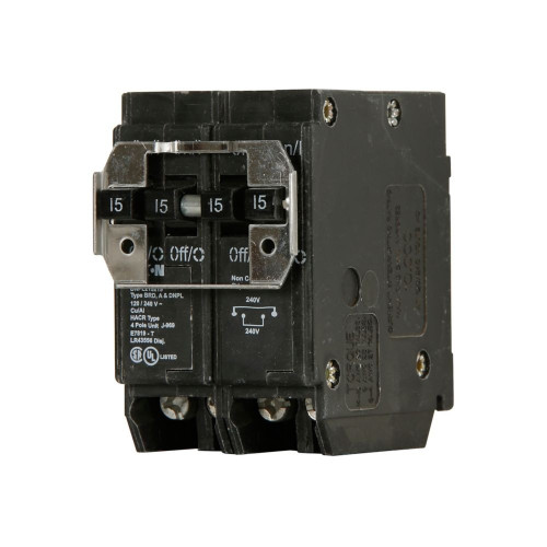 . . . . . Eaton Plug-In Circuit Breakers for CPM/CPL, Quadplex Independent Trip, (2) 15A, (1) 40A, (2) single-pole, (1) two-pole. Eaton. Eaton Corporation. DNPL154015.