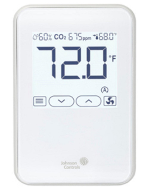 . . . . . Johnson Controls NSB8BHC240-0 NS Series Network CO2/Humidity/Temperature Sensor, 0-2000 ppm, 3% RH Accuracy, BACnet MS/TP, LCD Fixed Segment Display, White, JCI Logo