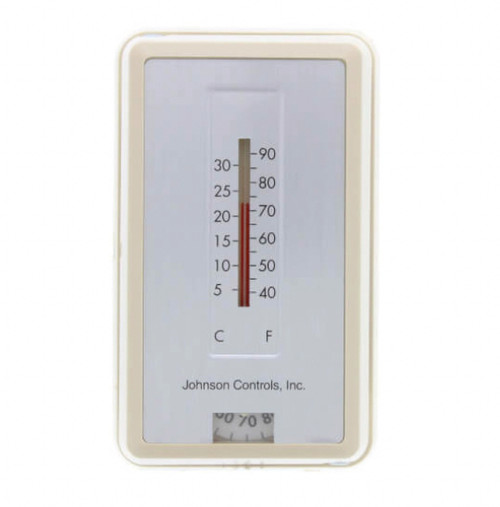 . . . . . Johnson Controls T-4100-1 Direct Acting Non-Relay Vertical Pneumatic Thermostat -The T-4000 Series Pneumatic Room Thermostats provide individual space temperature control in all types of heating and cooling applications. By producing a proportional output signal, these thermostats modulate controlled devices in response to load changes in the space. This imposes the least demand on mechanical heating and cooling apparatus. A variety of high volume output and low volume output controllers are available to meet the functional requirements of any control system. Auxiliary devices are available to perform functions such as two-position action, high-low pressure selection, sequencing, etc.. Johnson Controls. Johnson Controls. T-4100-1.