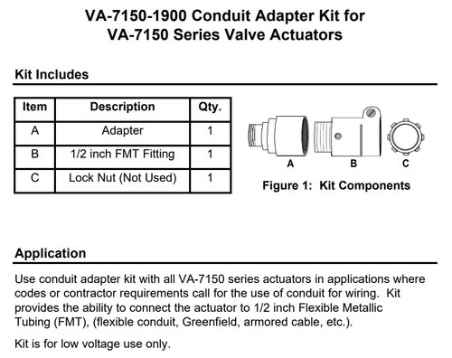 . . . . . Johnson Controls VA-7150-1900 Conduit Adapter Kit for VA-7150 Series Valve Actuators. Johnson Controls. Johnson Controls. VA-7150-1900.