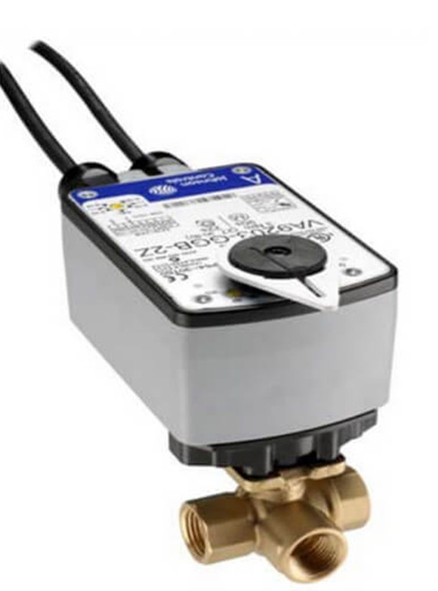 . . . . . Johnson Controls VG1841AE+923BGA Ball Valve Assembly, 3 Way, 1/2 in. NPT, 1.9 Cv, Forged Brass Body, Chrome Plated Brass Ball And Nickel Plated Brass Blowout-Proof Stem, Direct Mount Electric Actuator, 27 lb-in. Spring Return, 24 VAC, On/Off. Johnson Controls. Johnson Controls. VG1841AE+923BGA.
