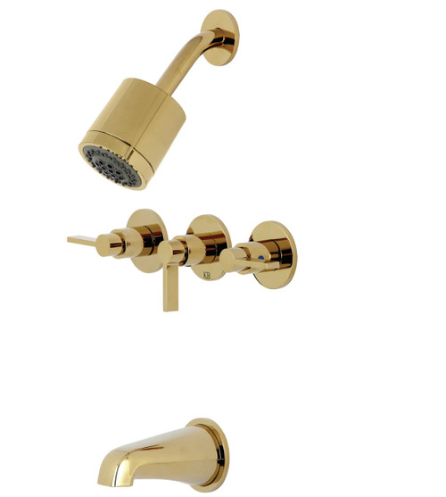 . . . . . NuvoFusion KBX8132NDL Three-Handle 5-Hole Wall Mount Tub and Shower Faucet, Polished Brass